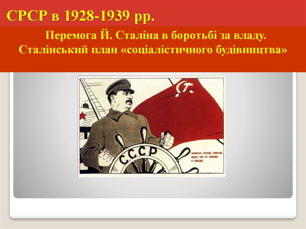 СРСР в 1928-1939 роки. Перемога Й. Сталіна в боротьбі за владу. Сталінський план соціалістичного будівництва