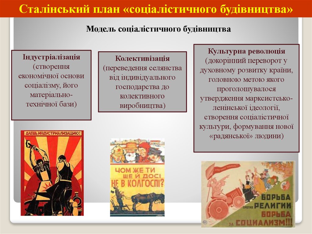 Сталінський план «соціалістичного будівництва»Модель соціалістичного будівництва