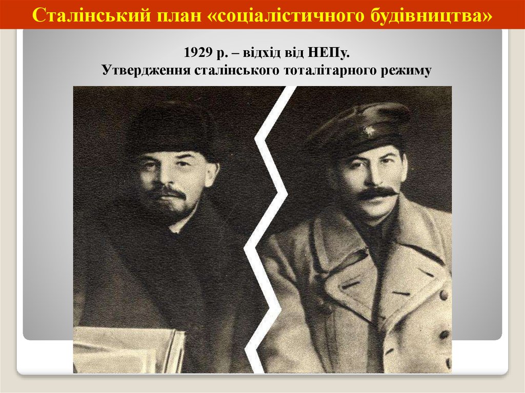 Сталінський план «соціалістичного будівництва»1929 р. – відхід від НЕПу.