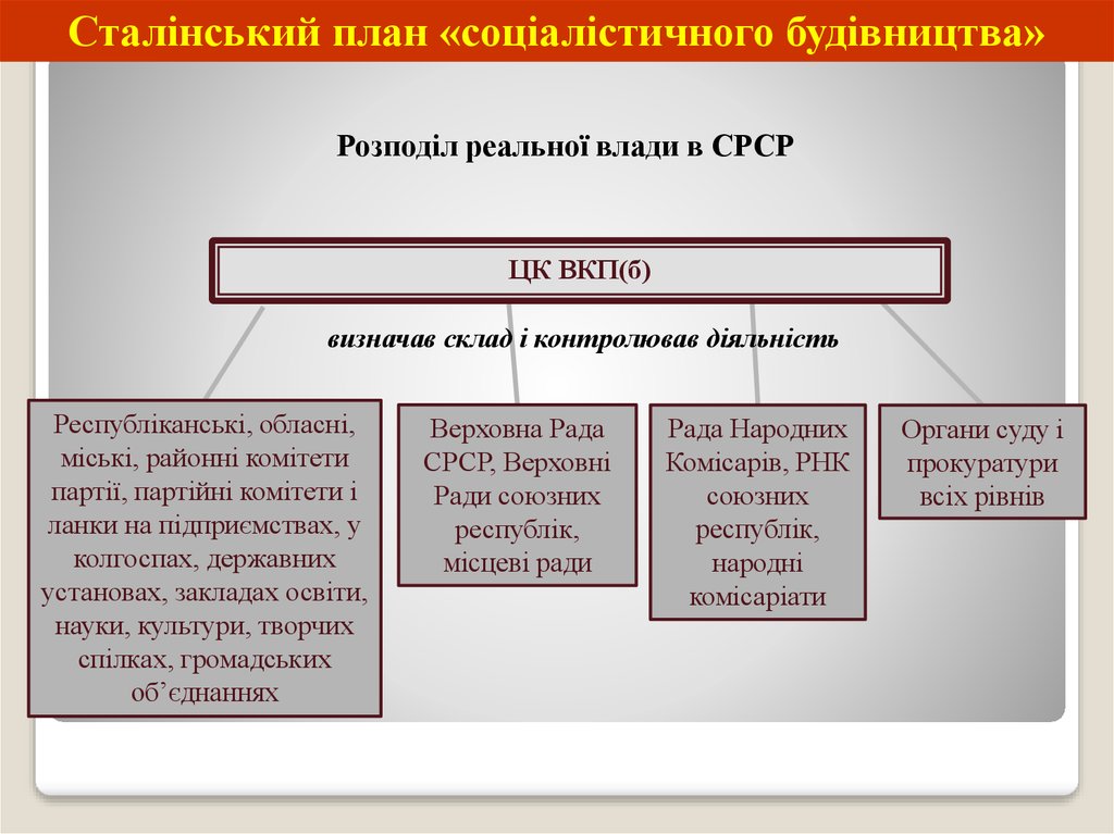 Сталінський план «соціалістичного будівництва»Розподіл реальної влади в СРСР