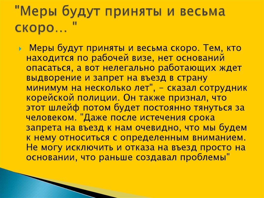 Меры будут приняты и весьма скоро. Тем, ктонаходится по рабочей визе, нет оснований