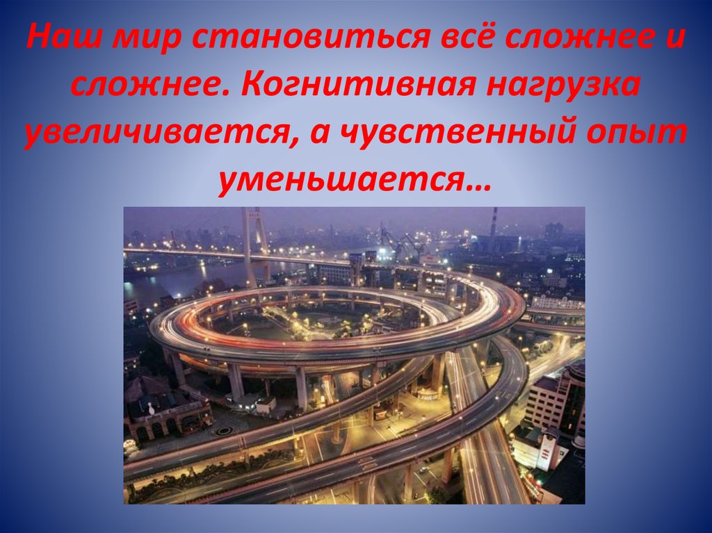 2. Наш мир становиться всё сложнее и сложнее. Когнитивная нагрузка увеличивается, а чувственный опыт уменьшается…
