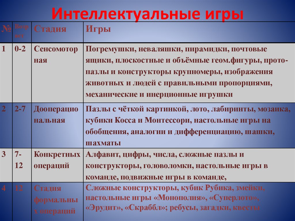 • Логические игры и головоломки• Компьютерные игры с разноуровневыми