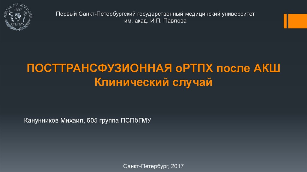 1. ПОСТТРАНСФУЗИОННАЯ оРТПХ после АКШ Клинический случай