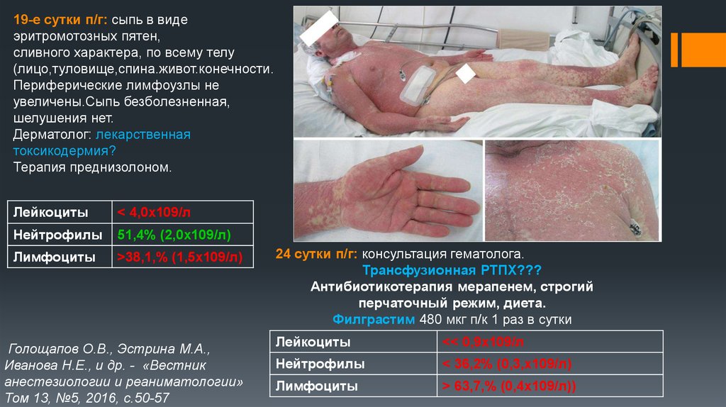 ПТ-РТПХ следует подозревать у всех пациентов с сыпью на коже, лихорадкой, нарушением