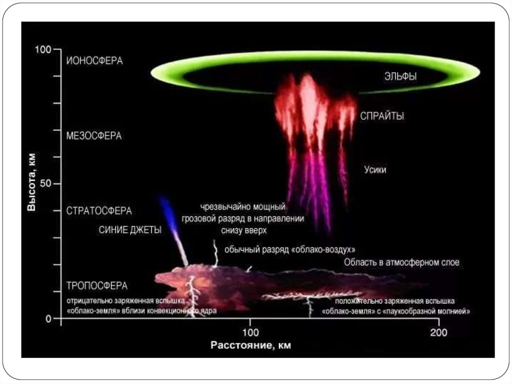 (вертикальные столбы света) в спрайтах достигают