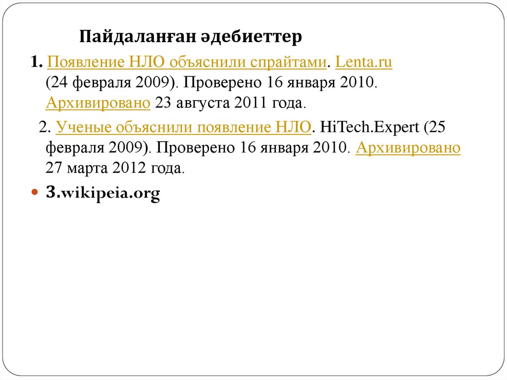 Пайдаланған әдебиеттер1. Появление НЛО объяснили спрайтами. Lenta.ru