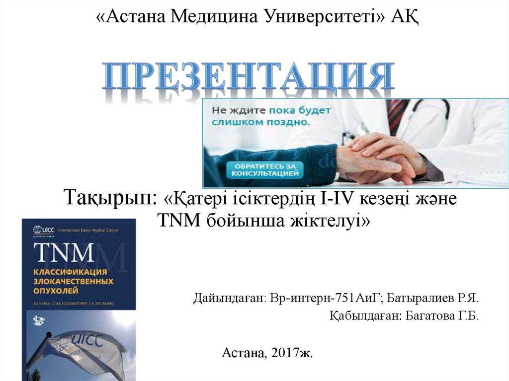 Тақырып: «Қатері ісіктердің I-IV кезеңі жәнеTNM бойынша жіктелуі»