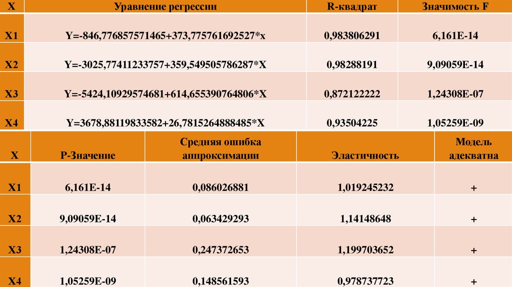 ХУравнение регрессии
