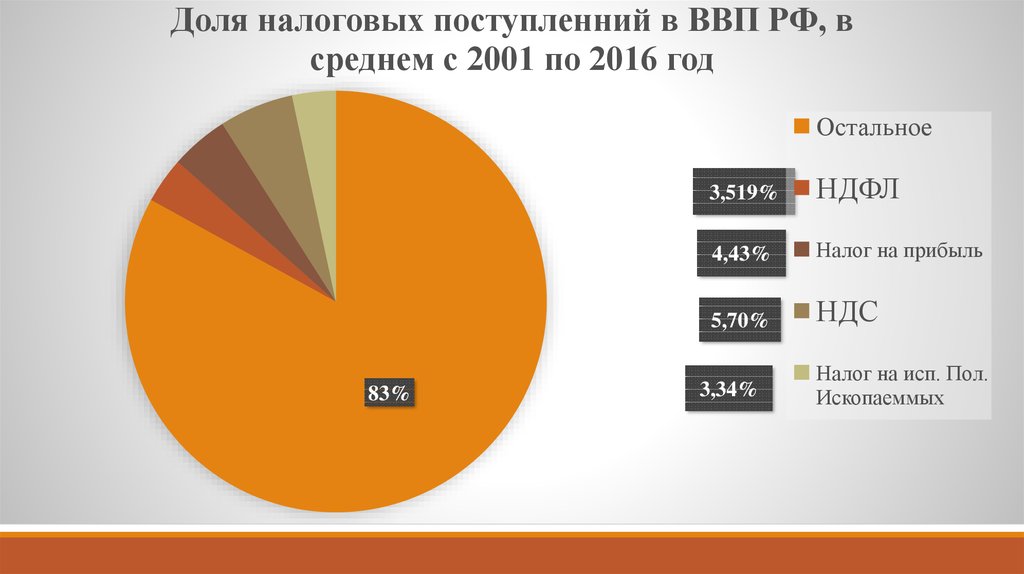 Доля налоговых поступленний в ВВП РФ, всреднем с 2001 по 2016 год
