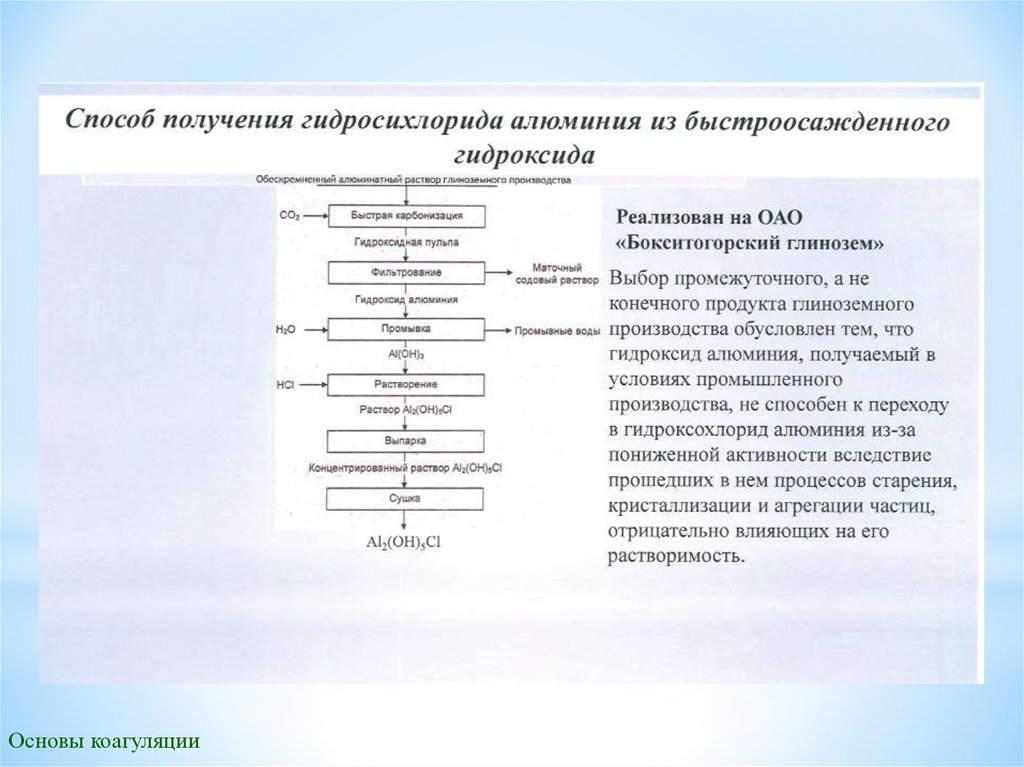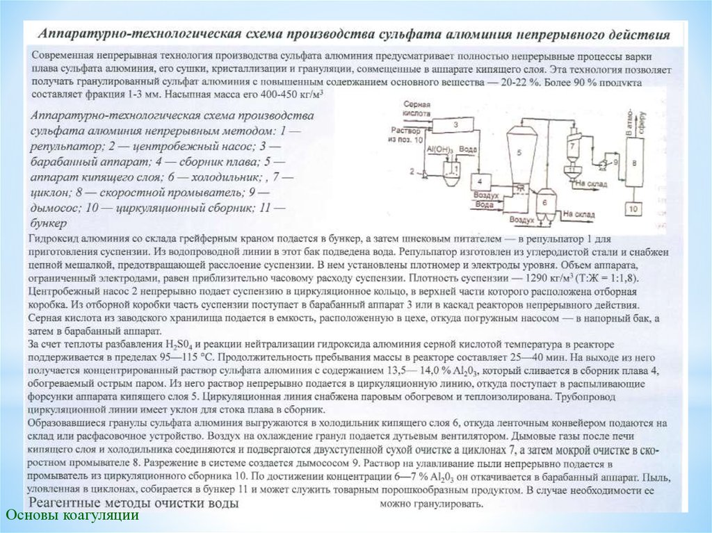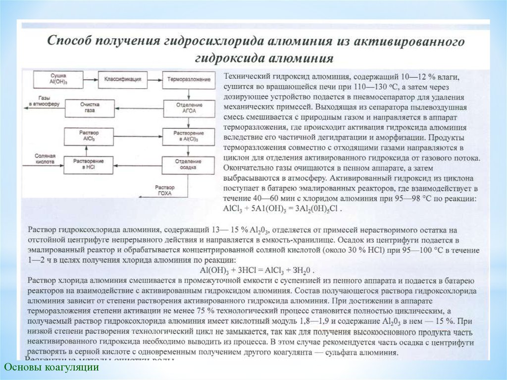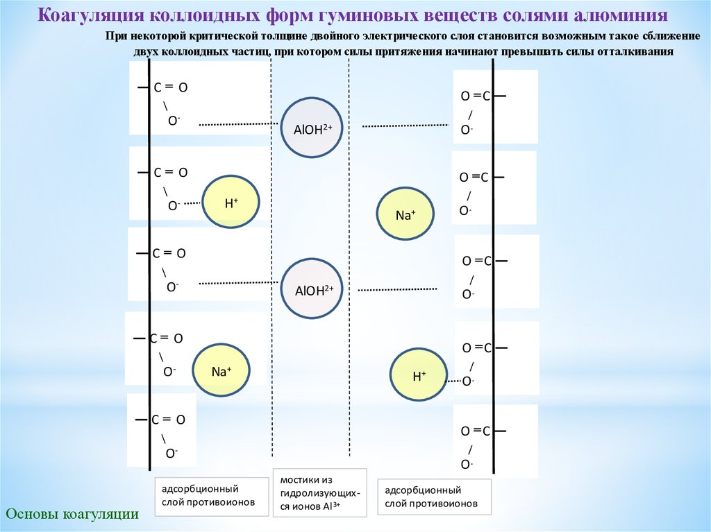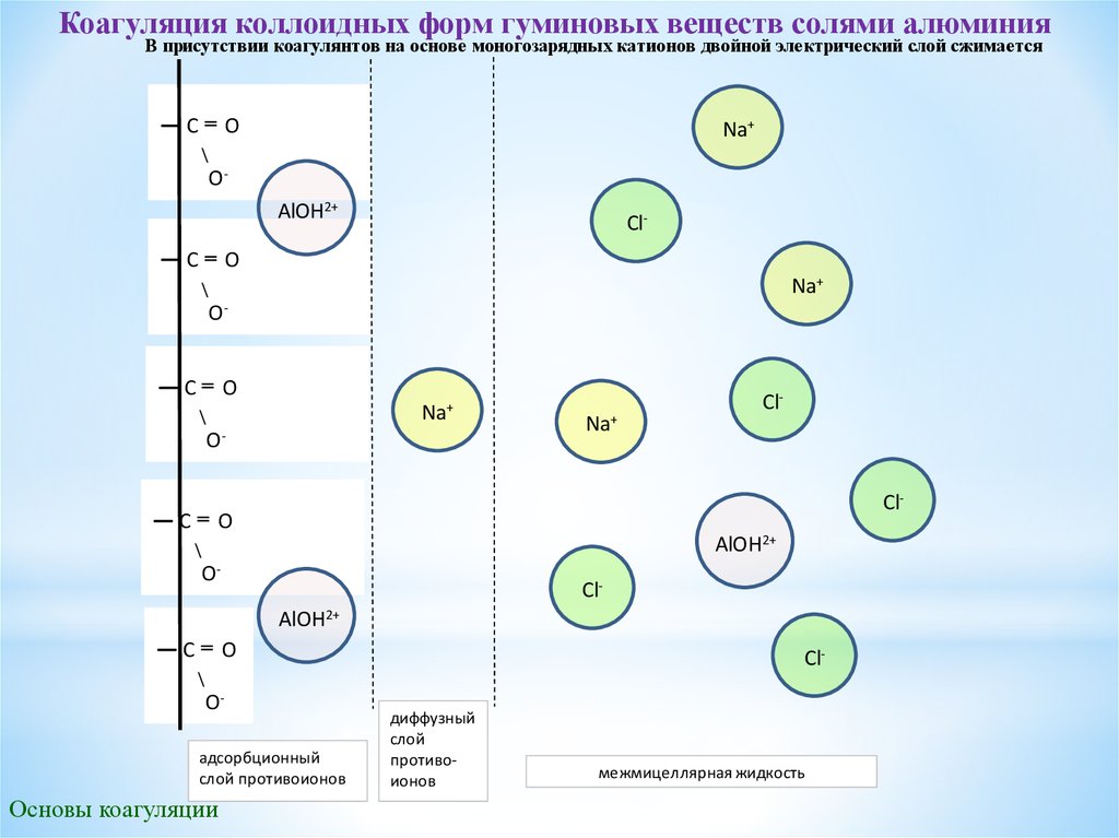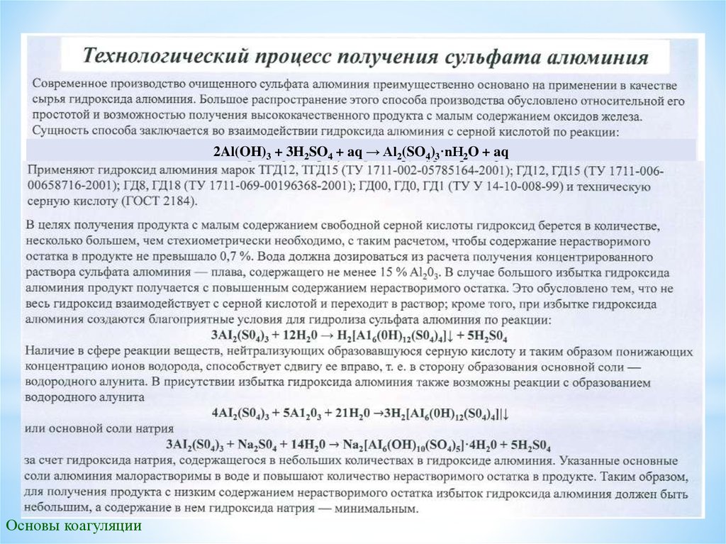 2Al(OH)3 + 3H2SO4 + aq → Al2(SO4)3·nH2O + aqОсновы коагуляции