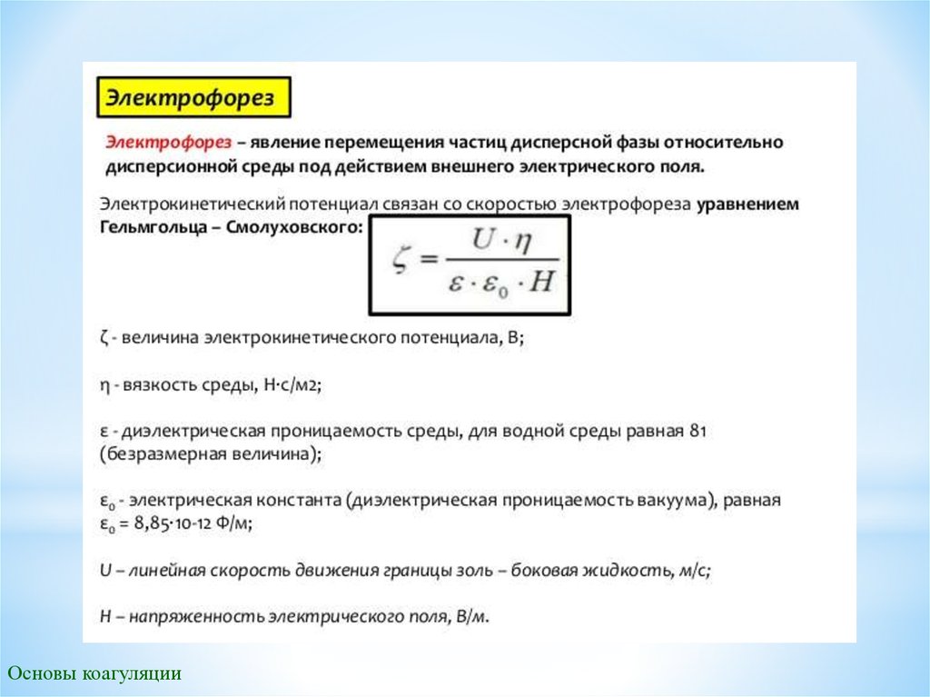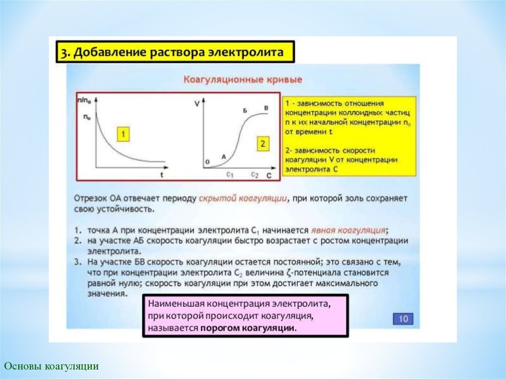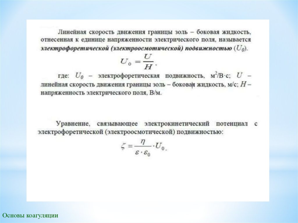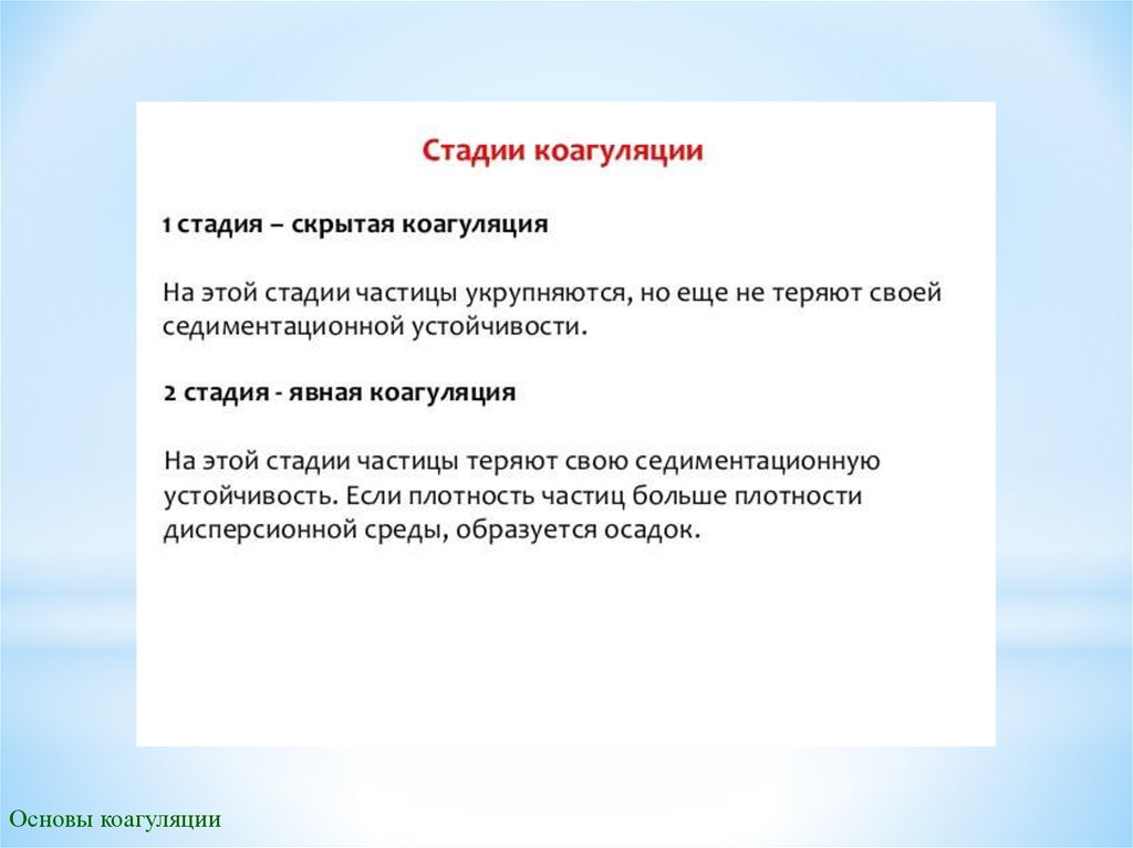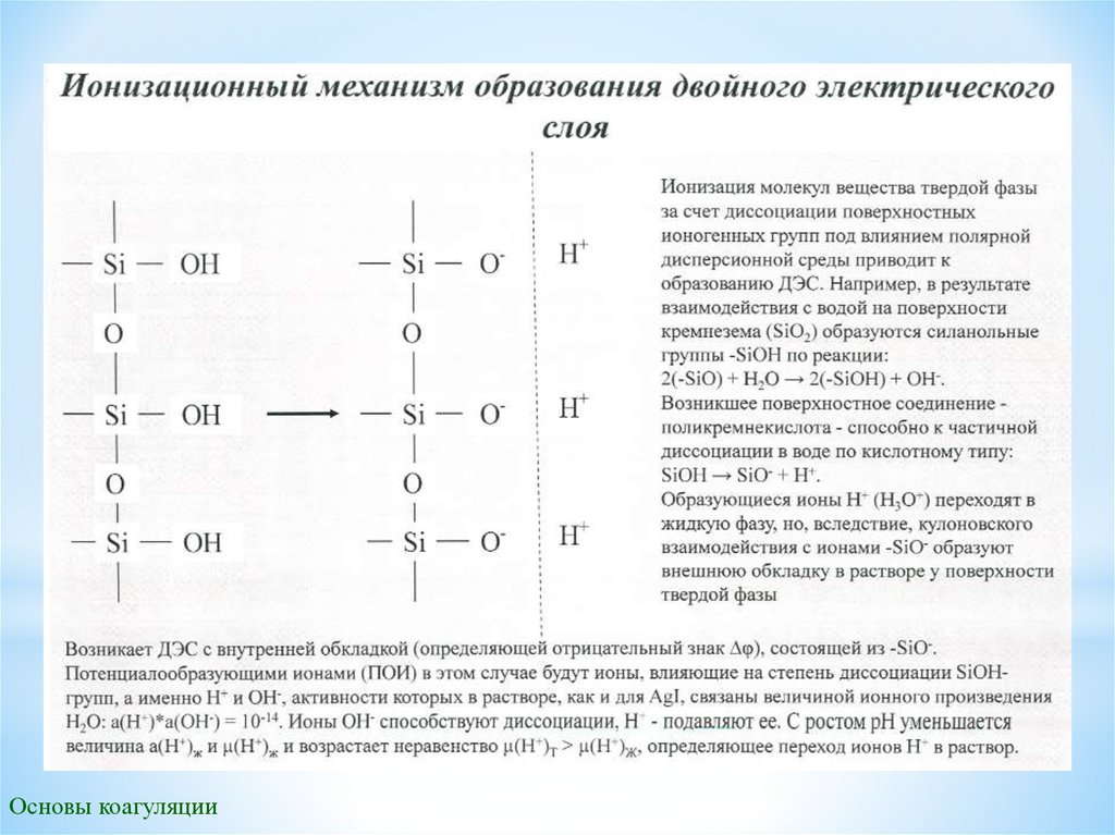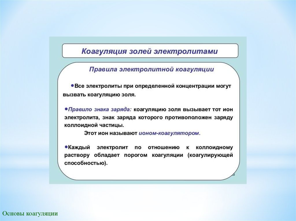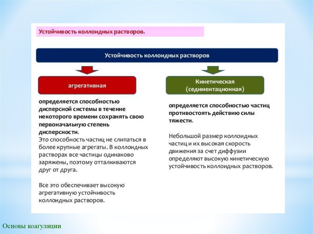 2Al(OH)3 + 3H2SO4 + aq → Al2(SO4)3·nH2O + aqОсновы коагуляции