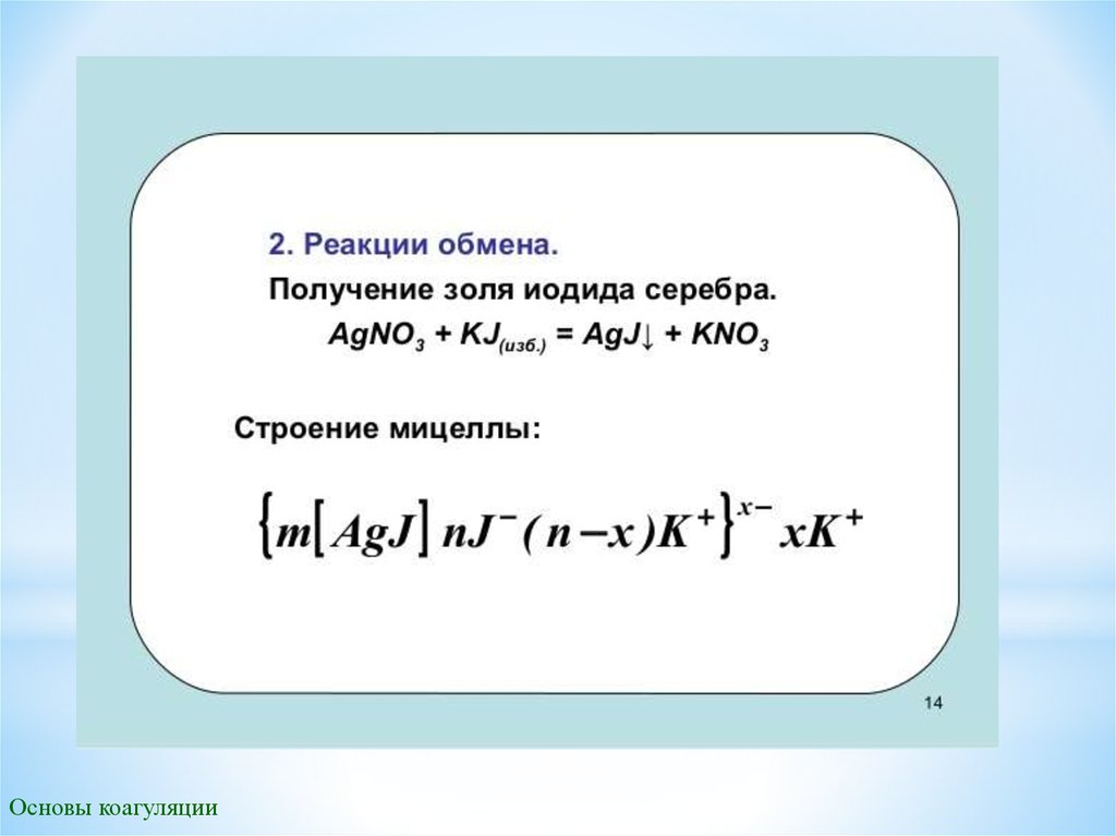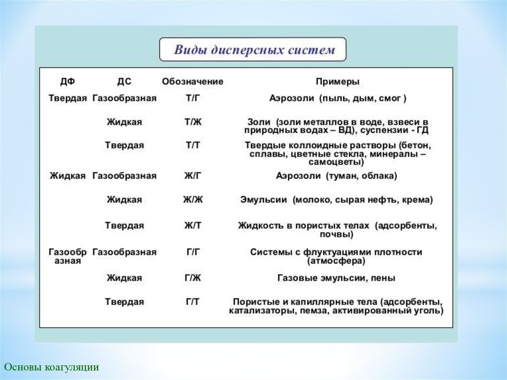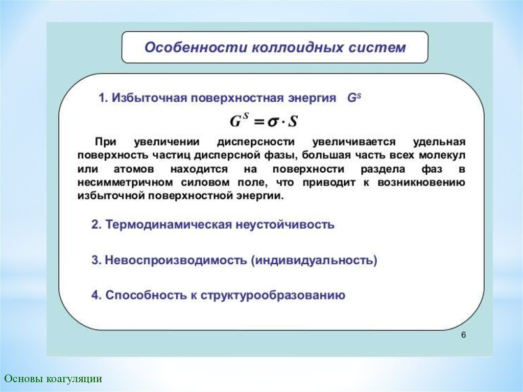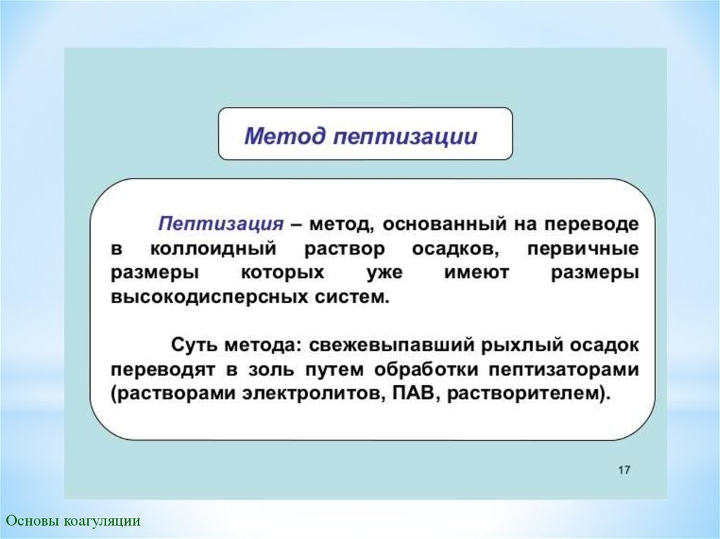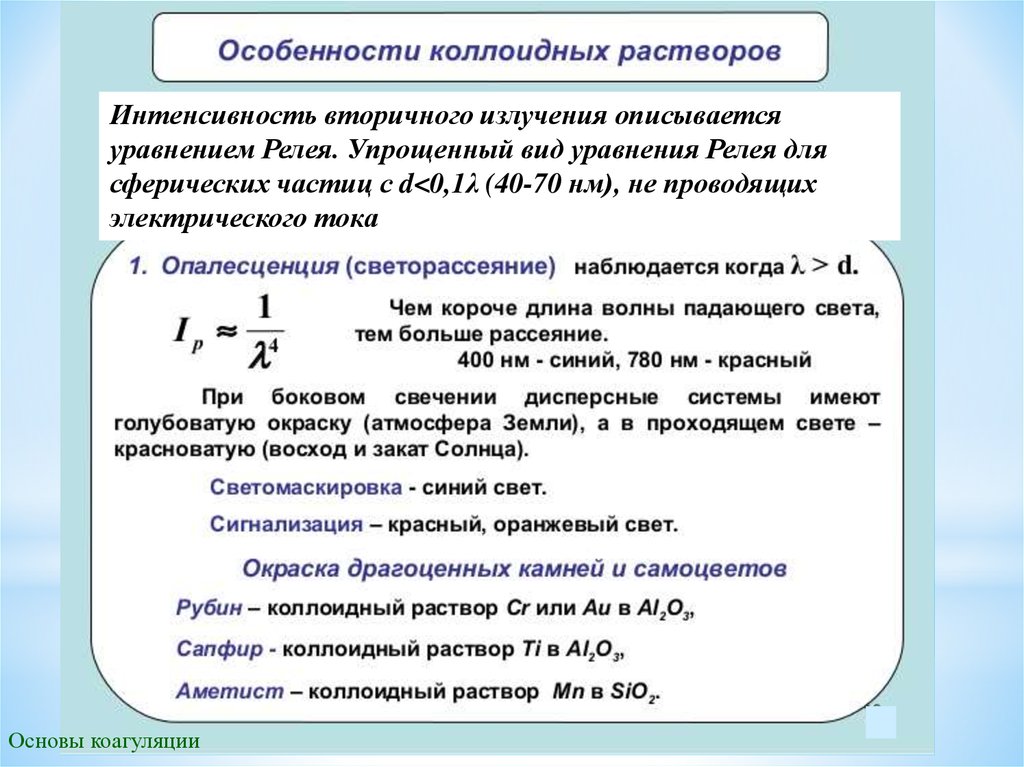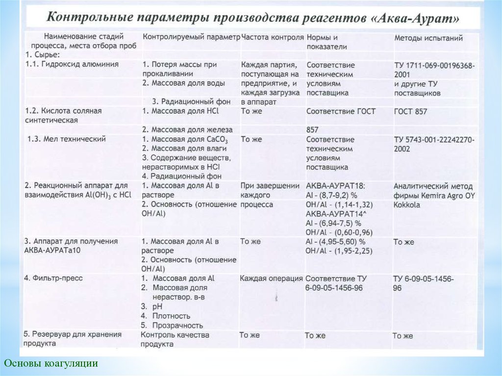 2Al(OH)3 + 3H2SO4 + aq → Al2(SO4)3·nH2O + aqОсновы коагуляции