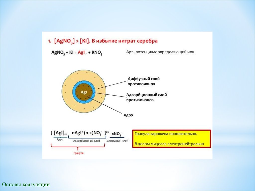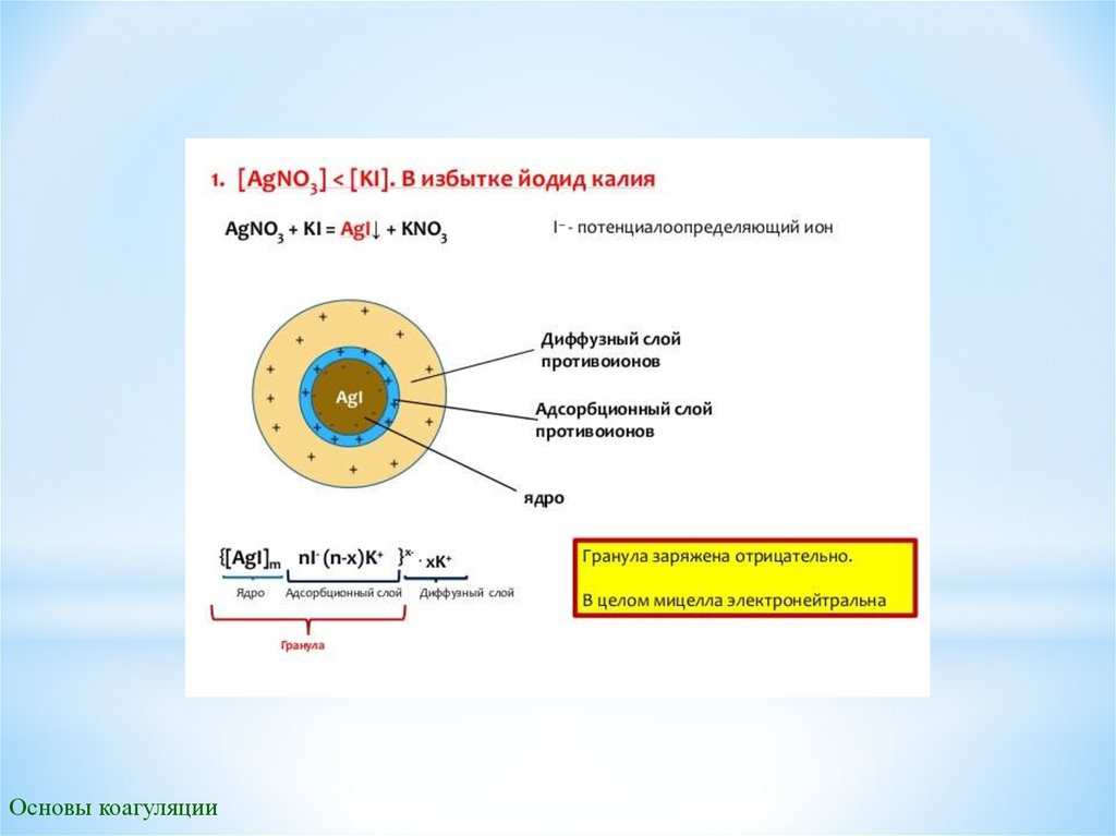 электронейтральна, а коллоидная частица заряжена. Мицелла представляет собой сложный многокомпонентный