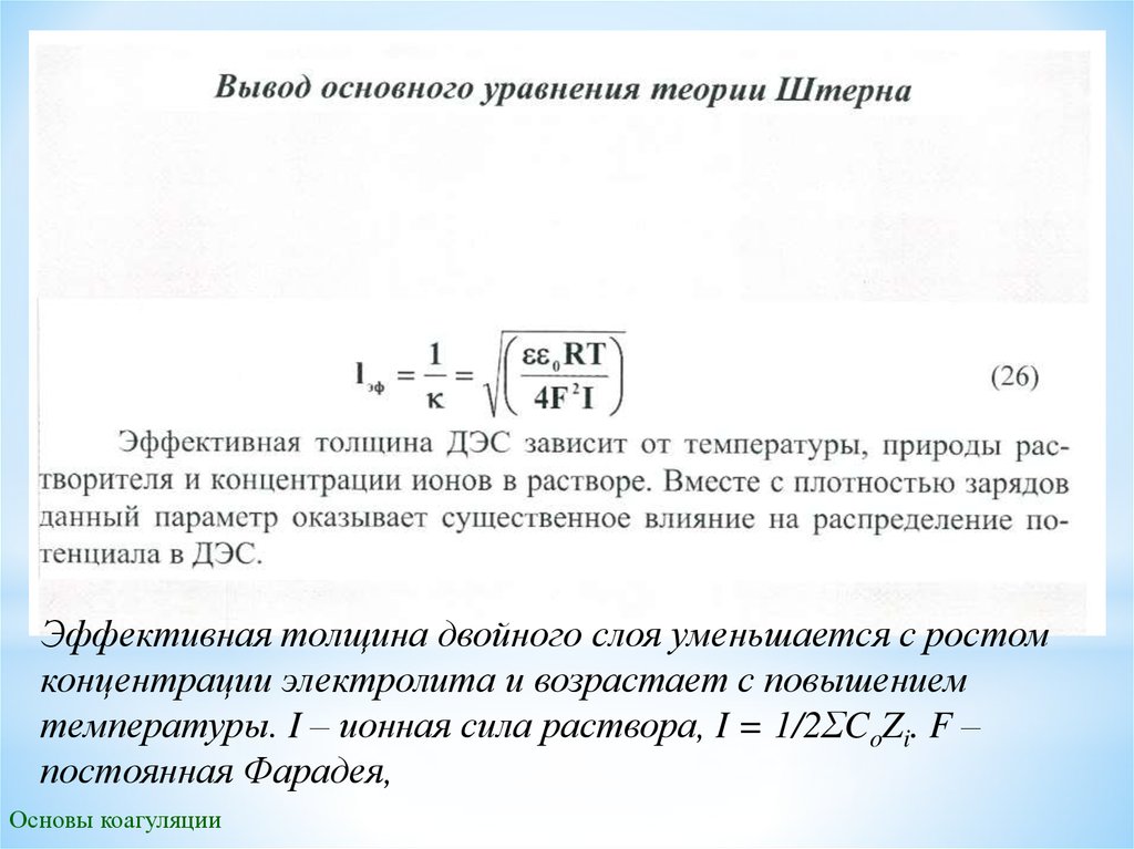 Эффективная толщина двойного слоя уменьшается с ростомконцентрации электролита и возрастает с повышением