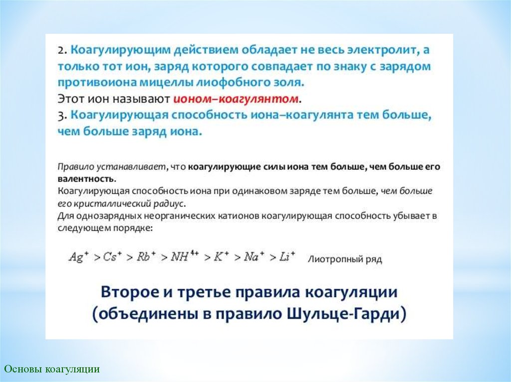Следовательно, коагулирующая способность трёхзарядного иона в 729 раз выше коагулирующей