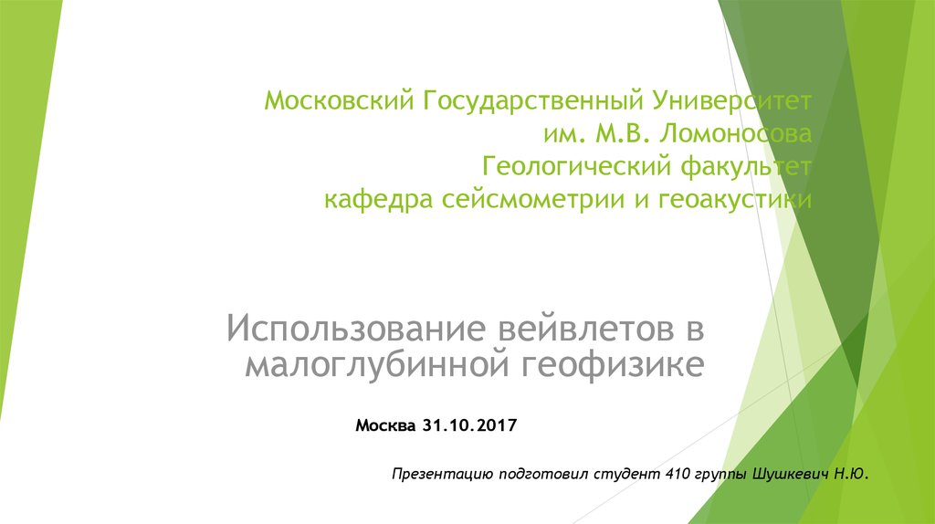 1. Московский Государственный Университет им. М.В. Ломоносова Геологический факультет кафедра сейсмометрии и геоакустики
