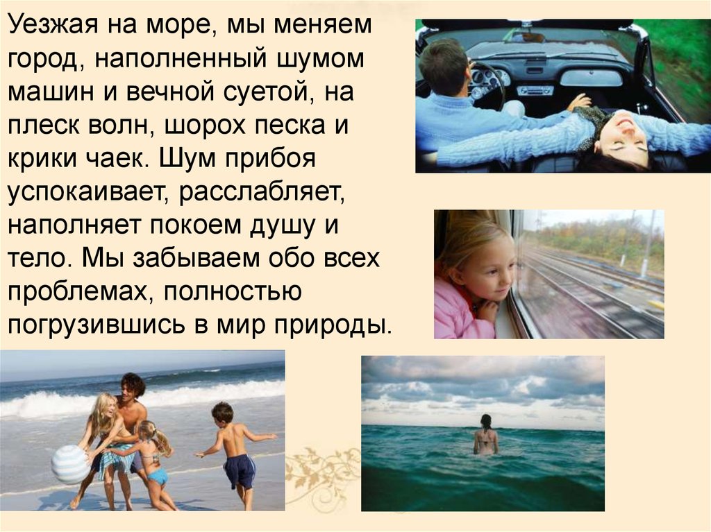 Уезжая на море, мы меняемгород, наполненный шумом