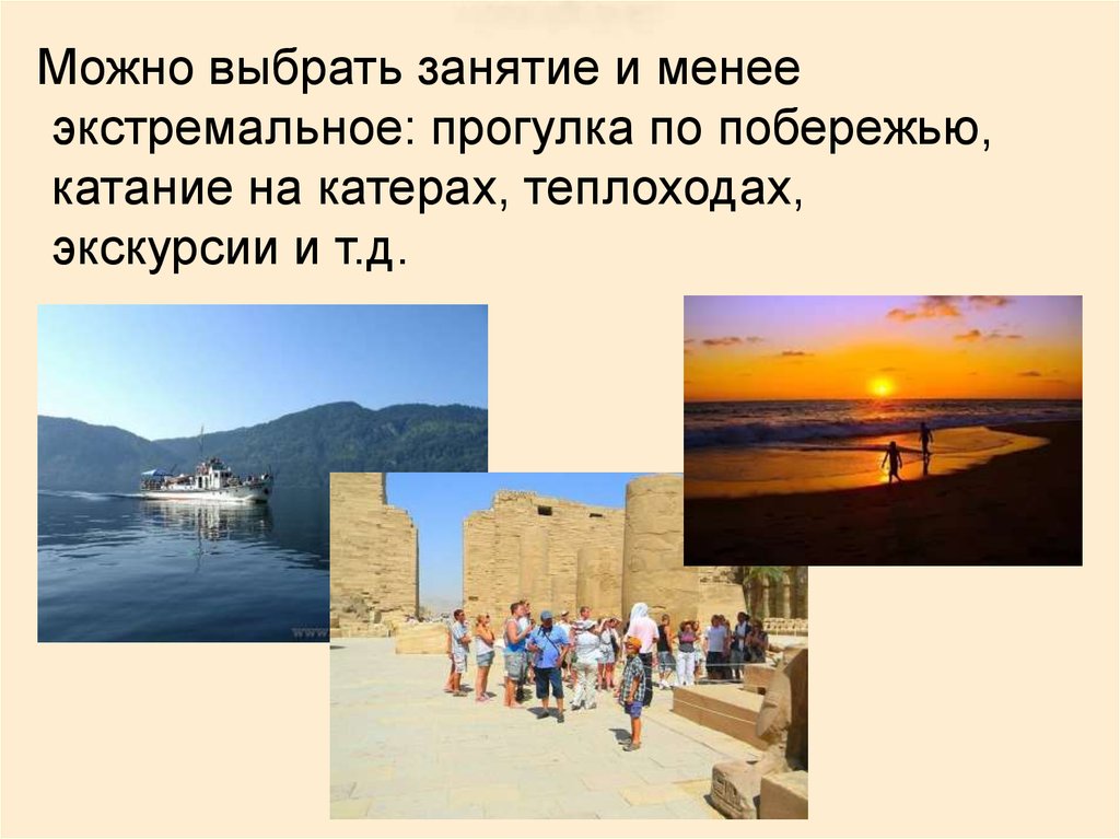 Можно выбрать занятие и менееэкстремальное: прогулка по побережью,