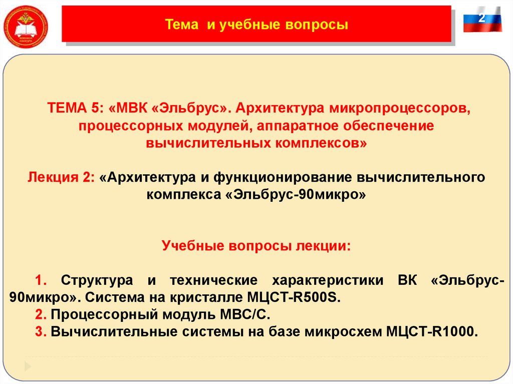 ТЕМА 5: «МВК «Эльбрус». Архитектура микропроцессоров,