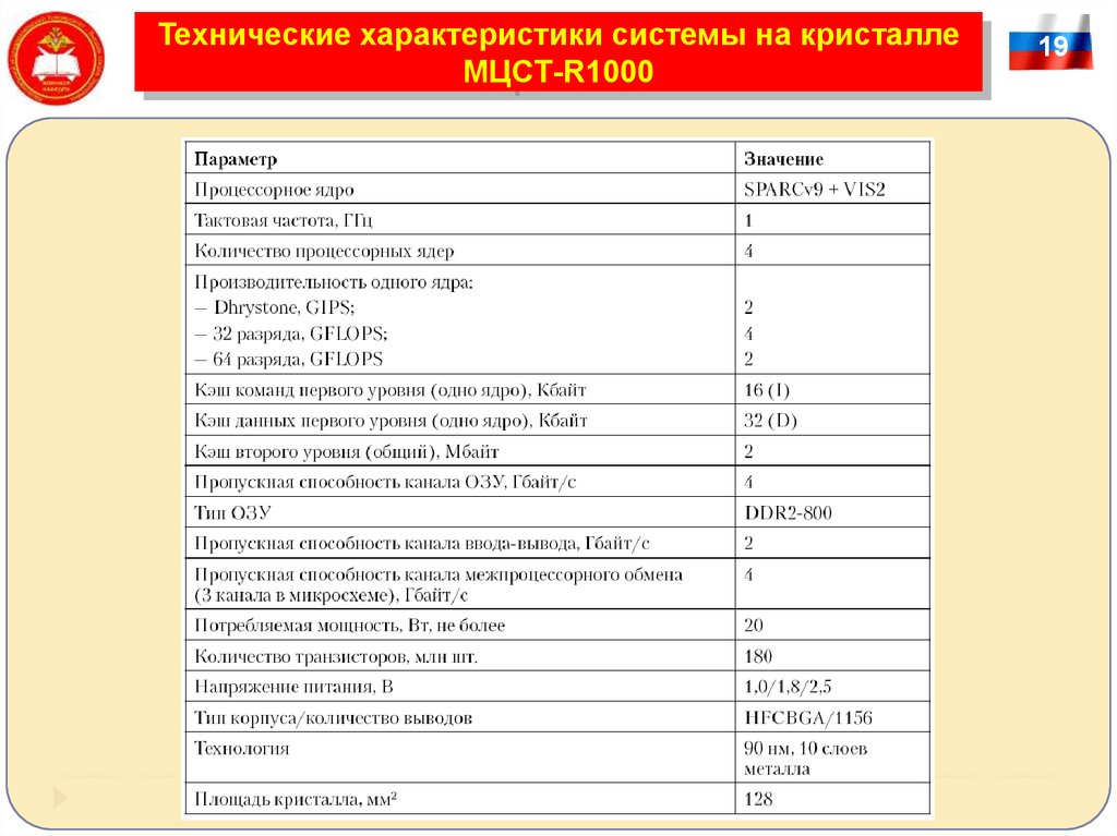 Технические характеристики системы на кристаллеМЦСТ-R1000