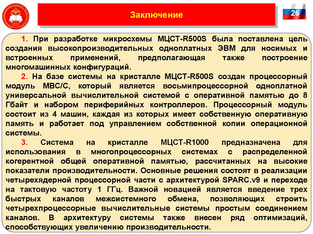 1. При разработке микросхемы МЦСТ-R500S была поставлена цель