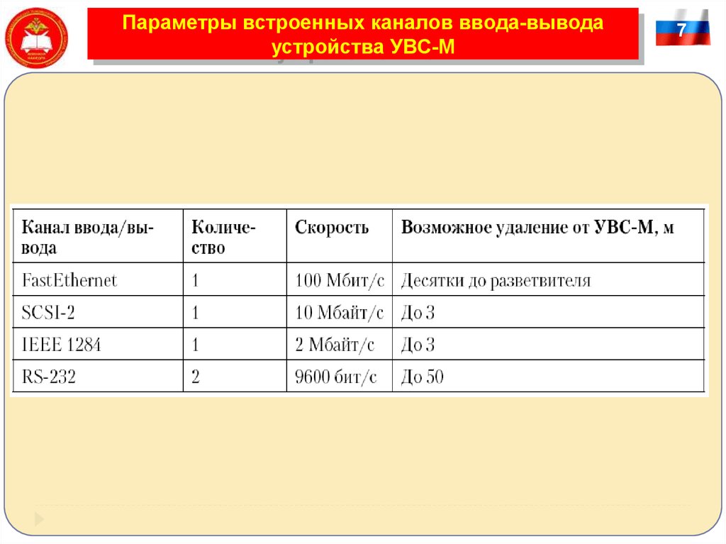 Параметры встроенных каналов ввода-выводаустройства УВС-М