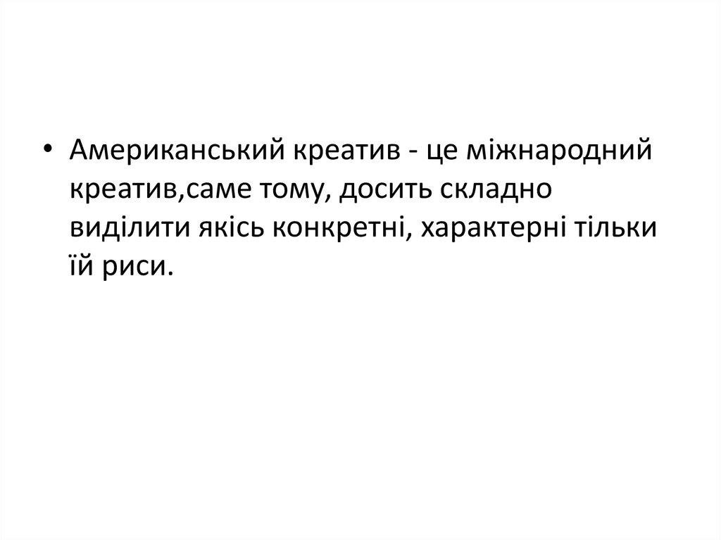 • Американський креатив - це міжнароднийкреатив,саме тому, досить складно