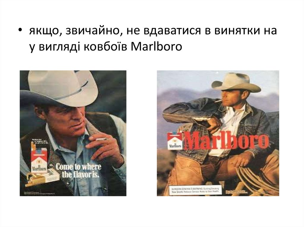 • якщо, звичайно, не вдаватися в винятки нау вигляді ковбоїв Marlboro