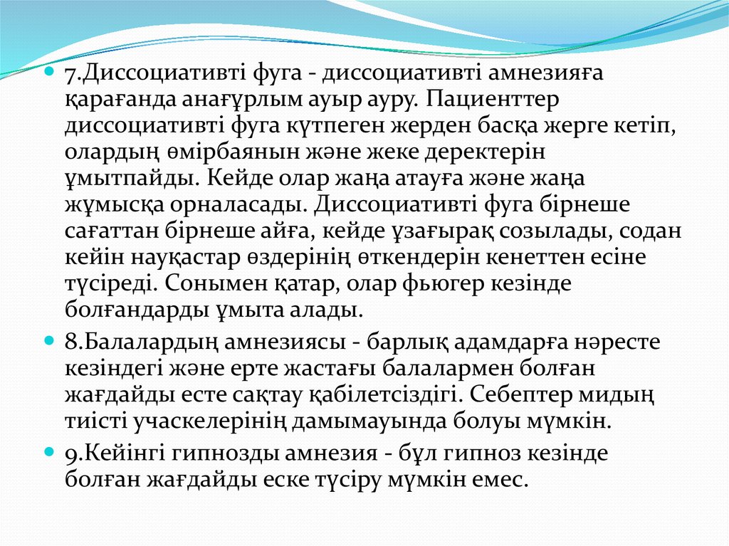 7.Диссоциативті фуга - диссоциативті амнезияғақарағанда анағұрлым ауыр ауру. Пациенттер