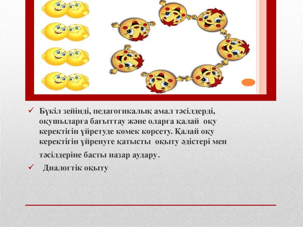 Бүкіл зейінді, педагогикалық амал тәсілдерді,оқушыларға бағыттау және оларға қалай оқу