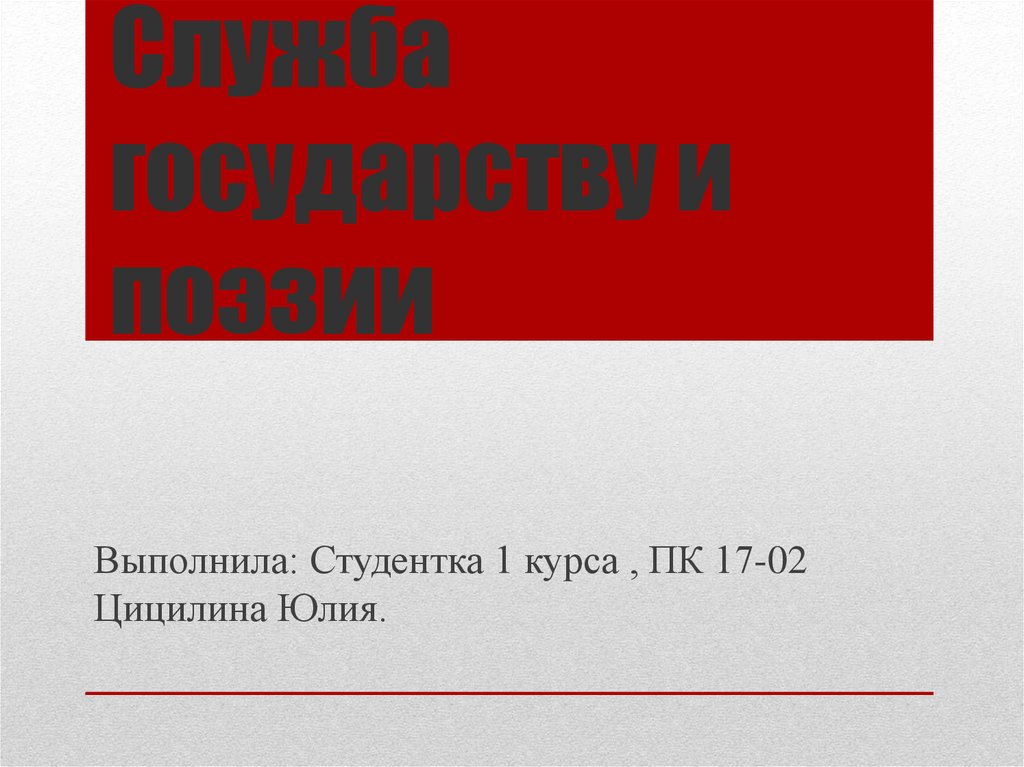 1. Служба государству и поэзии