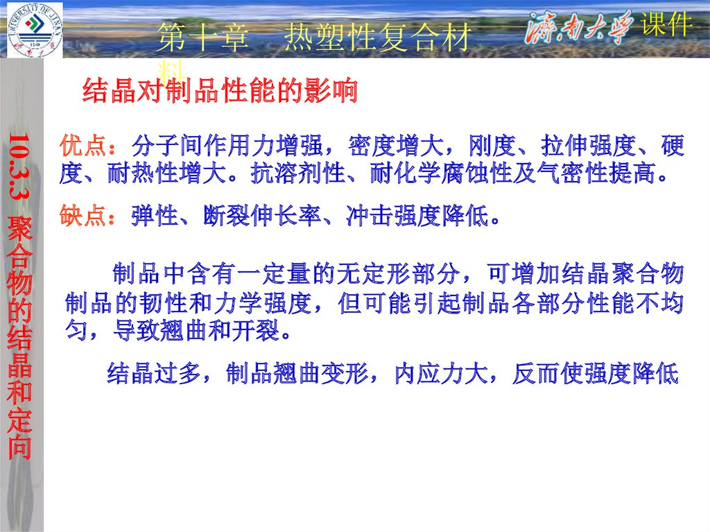 制品中含有一定量的无定形部分 可增加结晶聚合物