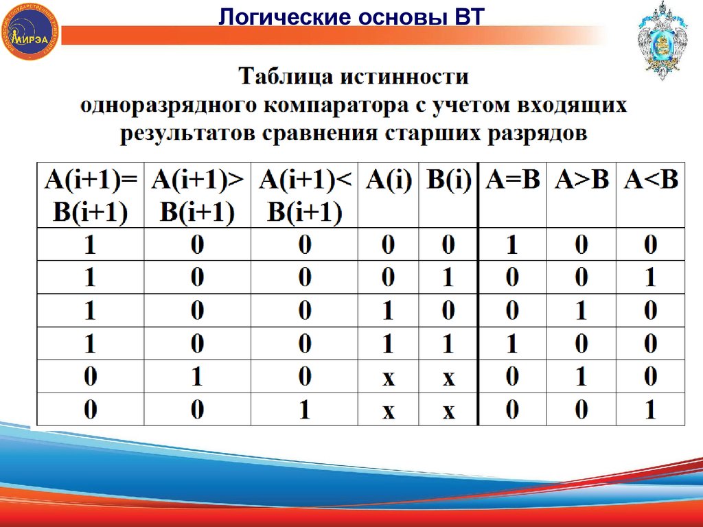 Логические основы ВТ. Компараторы