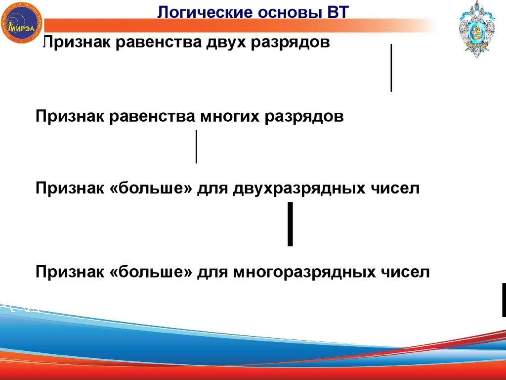 Логические основы ВТПризнак равенства двух разрядов