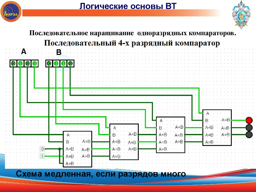 Логические основы ВТПоследовательное наращивание одноразрядных компараторов.