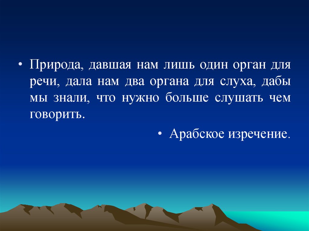• Природа, давшая нам лишь один орган дляречи, дала нам два органа для слуха, дабы