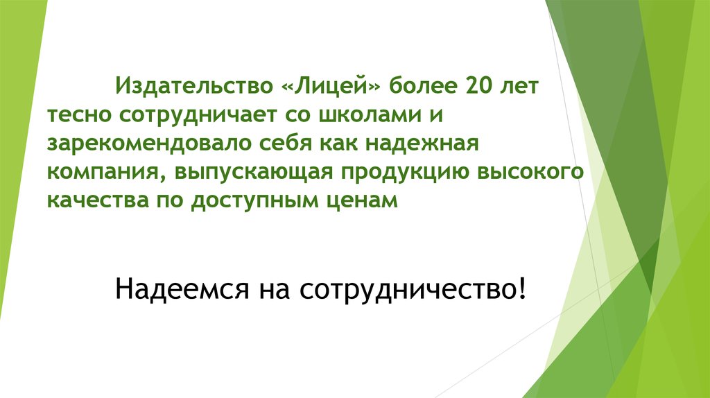 Издательство «Лицей» более 20 леттесно сотрудничает со школами и