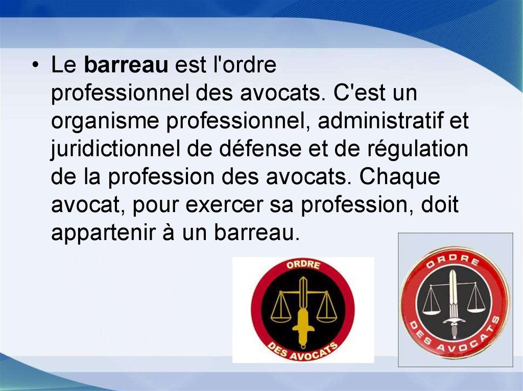 • Le barreau est l'ordreprofessionnel des avocats. C'est un