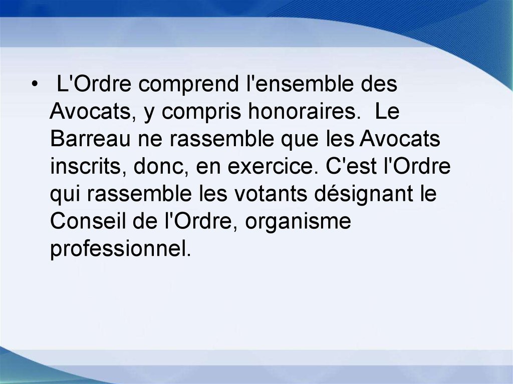 • L'Ordre comprend l'ensemble desAvocats, y compris honoraires. Le