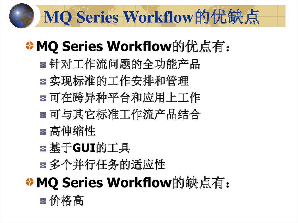 MQ Series Workflow的优缺点MQ Series Workflow的优点有