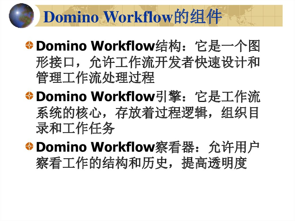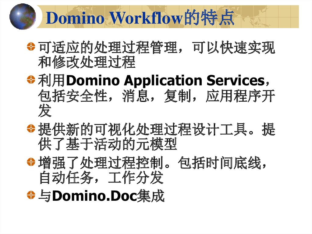 Domino Workflow的特点可适应的处理过程管理 可以快速实现