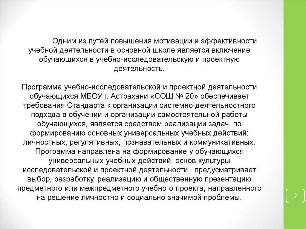 Программа учебно-исследовательской и проектной деятельности