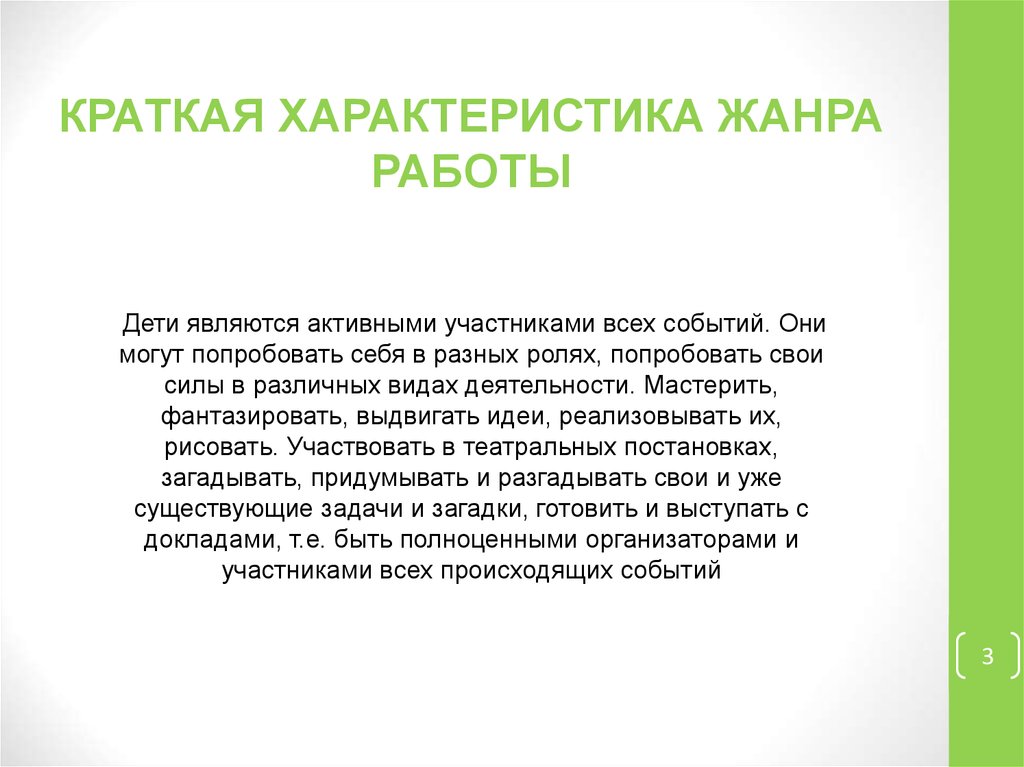 КРАТКАЯ ХАРАКТЕРИСТИКА ЖАНРАРАБОТЫ
