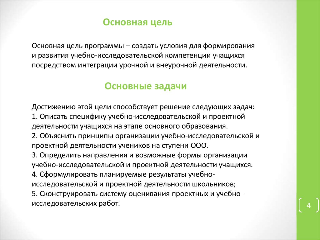 Основная цельОсновная цель программы – создать условия для формирования
