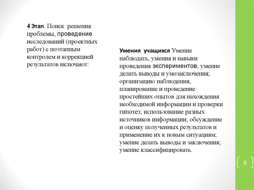 4 Этап. Поиск решенияпроблемы, проведение
