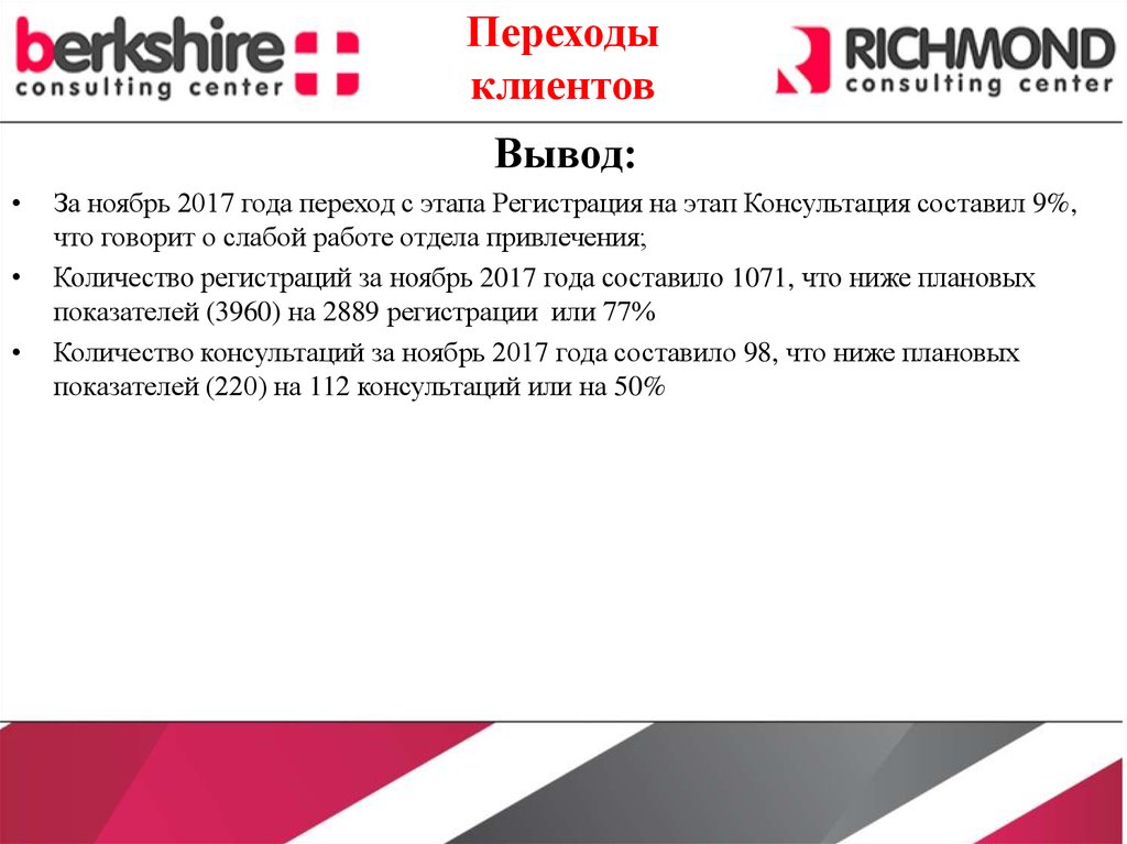 Негативной можно признать динамику в приходе клиентов переход всего 9% с