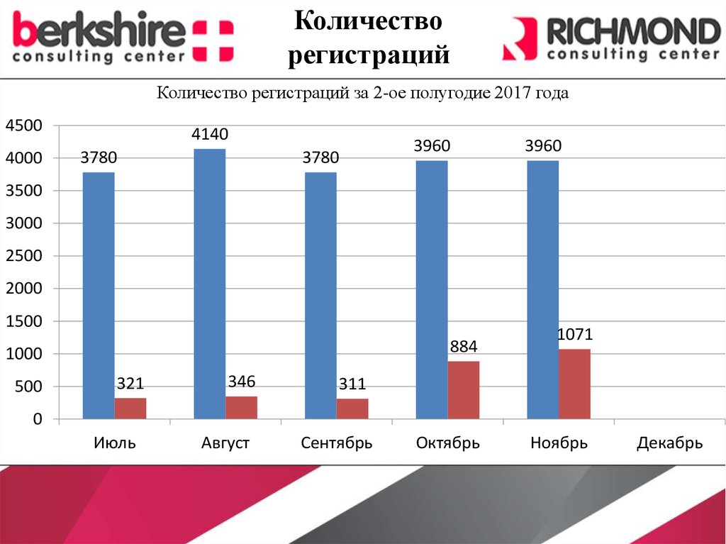 Количество регистраций за ноябрь 2017 года составило 1071, что ниже плановых