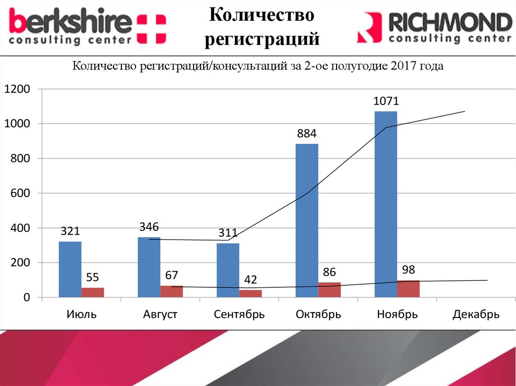 Количество регистраций/консультаций за 2-ое полугодие 2017 года
