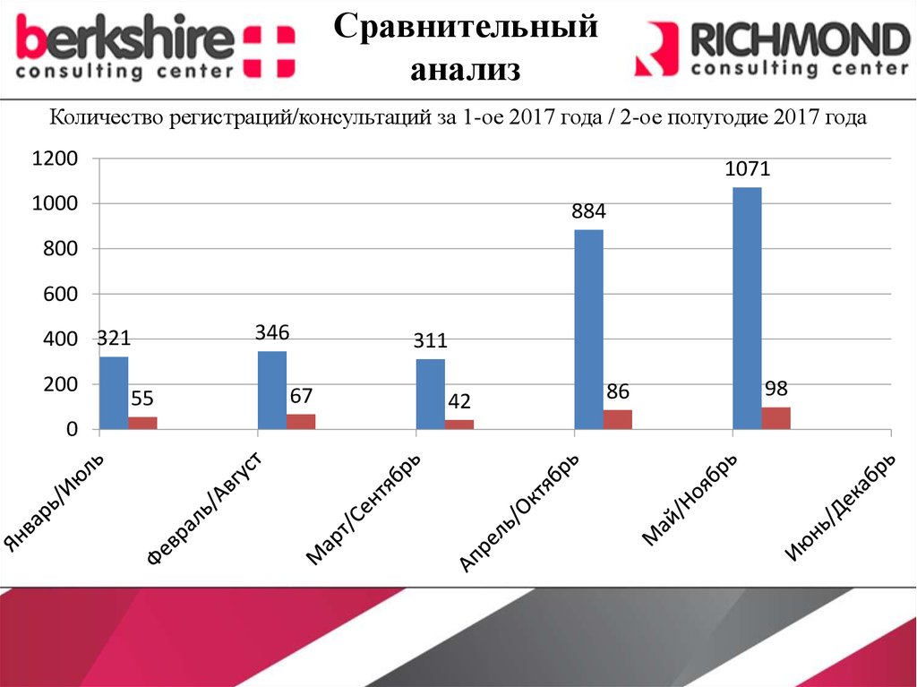 Количество регистраций/консультаций за 1-ое 2017 года / 2-ое полугодие 2017 года